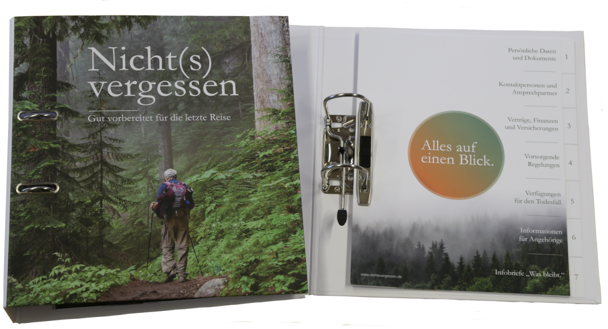 Der Motivordner von „Nicht(s) vergessen.“ gibt Ihnen allein schon durch sein Register einen guten Rahmen zum Starten. Die angebotene Vorsorgedatei können Sie sich kostenlos herunterladen.